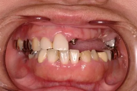 上顎:左右4にアタッチメントを装着し、部分床義歯装着(前歯6本は保険治療の硬質レジン前装冠装着)下顎:左右3にアタッチメントを装着し、部分床義歯装着